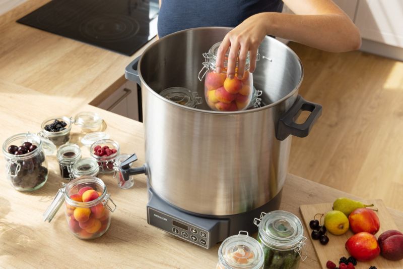 Освен класическото консервиране, помагам и като надежден пивовар по много различни начини. Мога да готвя, загрявам или поддържам храна и напитки на определена температура. По желание ще сготвя различни сосове, супи, дори паста или кнедли. Напитките също са разнообразни! Ще направя страхотно греяно вино, сайдер, чайове от истински съставки, кафе, горещ шоколад и др. Можете лесно да сервирате храна, след като свалите основният капак с практична дръжка, и напитки благодарение на крана за източване, който има плавен поток. Мога да бъда страхотен спътник навсякъде, където има електрически контакт. Вземете ме с вас на вилата и градината. Не е нужно да се притеснявате от сложна поддръжка. С хигиенична неръждаема стомана се мие почти без работа и не поема никакви миризми.