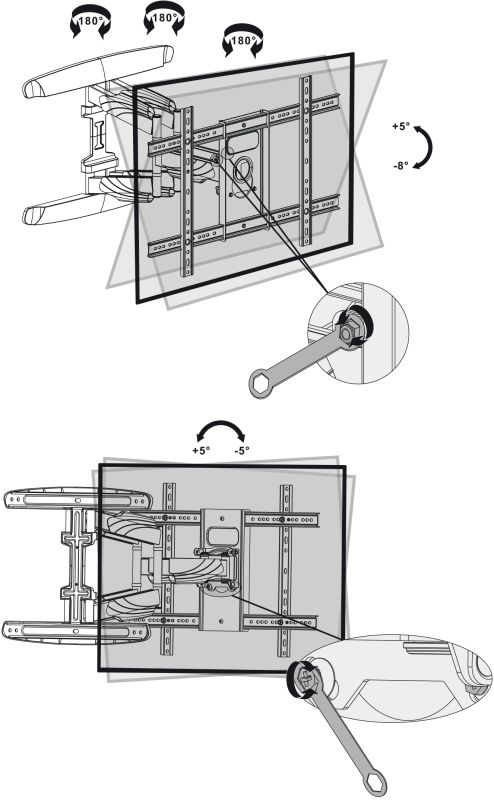 Няма да ви позволи да наклоните или завъртите устройството настрани. Така че, ако искате да използвате задните входове и изходи, ще трябва да разхлабите винтовете, да премахнете устройството от стената и след това да го прикрепите отново. Разстоянието от стената може да се увеличи с дистанционни пръстени, но само малка част от производителите предлагат това решение. Следователно фиксираните стойки са подходящи, ако телевизорът има изходи отстрани или ако не планирате да боравите с устройството.