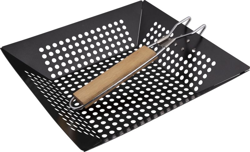 Тиган за скара, изработен от лека въглеродна стомана и сгъваема дръжка, е предназначен за печене на гарнитури, зеленчуци, но и месо.