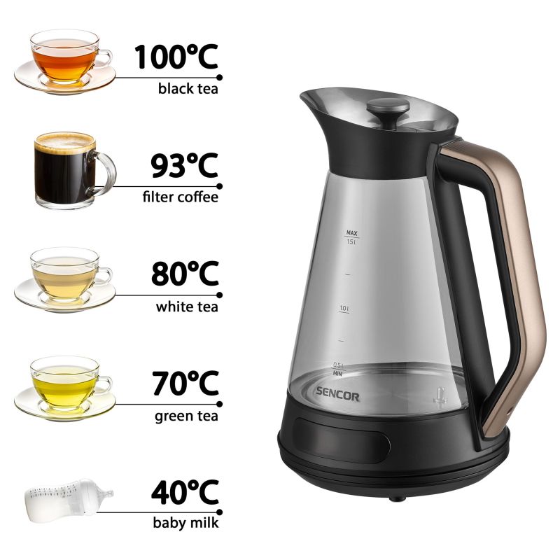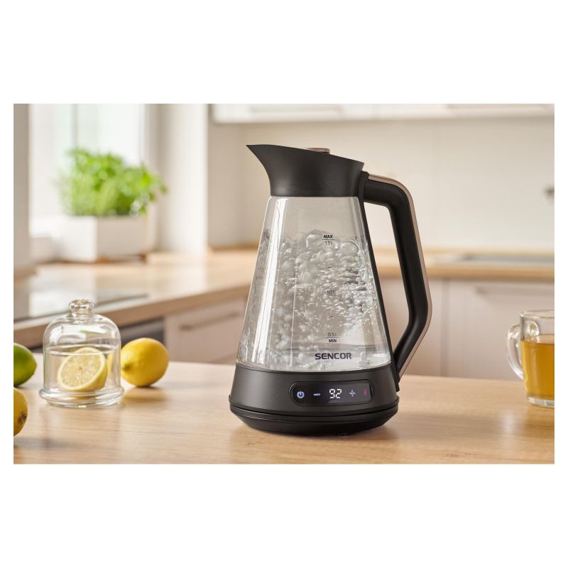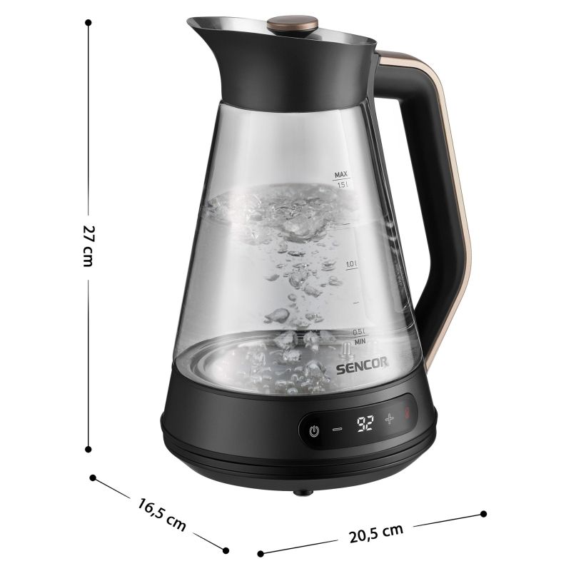 СТЪКЛЕНА ЕЛЕКТРИЧЕСКА КАНА С РЕГУЛИРАНЕ НА ТЕМПЕРАТУРА SENCOR SWK 1595BK