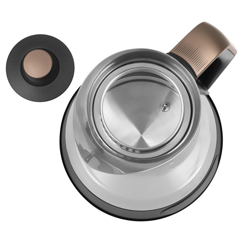 Подобрете ритуалите си за чай и кафе с електрическата кана с регулиране на температура от SWK 1595BK – където авангардната технология се среща с вечния дизайн. С капацитет от 1,5 литра и променлив контрол на температурата от 35°C до 100°C, тази кана гарантира, че всяка напитка е приготвена перфектно, независимо дали приготвяте деликатен зелен чай или силна френска преса. Захранвана от високоефективен нагревателен елемент с мощност 2150 W, тя бързо и ефективно довежда водата до желаната температура. Функцията за поддържане на топлина поддържа идеалната топлина, а звуковата индикация за старт/стоп добавя нотка удобство към ежедневието ви. Безопасността е от първостепенно значение, благодарение на двойна система за безопасност и централен конектор STRIX 360° за безпроблемна работа без кабел. Изработена от висококачествено боросиликатно стъкло и акцентирана с елегантна неръждаема стомана, SWK 1595BK не е просто кухненски уред – тя е впечатляващ елемент.