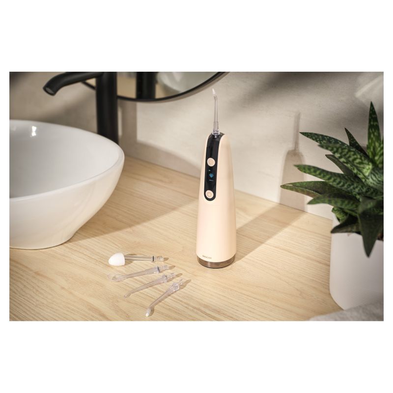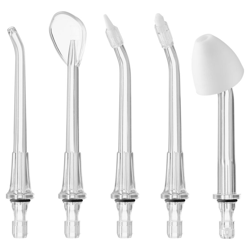 5 накрайника за струи: Стандартен накрайник, Джобен накрайник, Ортодонтски накрайник, Стъргалка за език, Носен накрайник