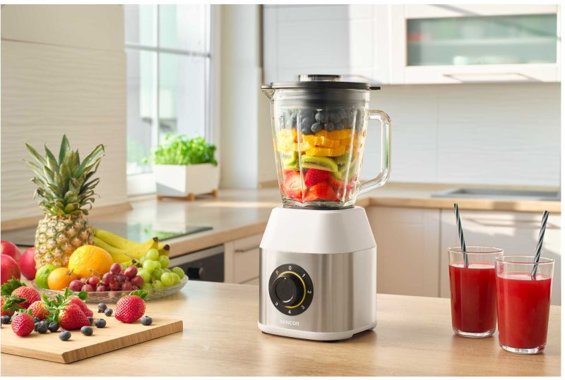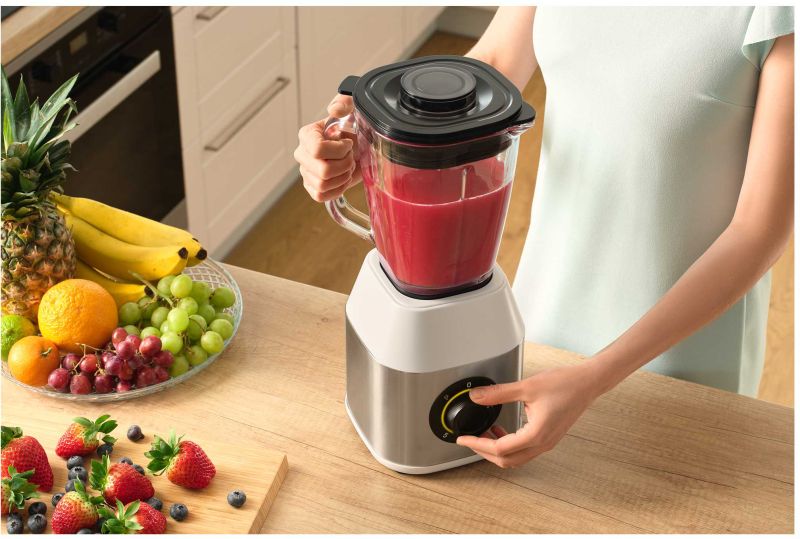 Мощен 1250W мотор с 24000 об/мин 1.5L стъклен съд 6 остриета от неръждаема стомана Намалява окисляването за питателни смутита 5 скорости и пулсираща функция Идеален за приготвяне на пресни плодови и фитнес напитки, смутита, супи, салати и бебешка храна Пулсираща функция за краткотрайно пасиране и раздробяване на лед Отлична стабилност благодарение на вендузи Вграден предпазен механизъм и неплъзгащи се крачета за максимална безопасност по време на употреба