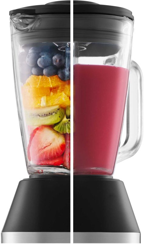 Мощен 1250W мотор с 24000 об/мин 1.5L стъклен съд 6 остриета от неръждаема стомана Намалява окисляването за питателни смутита 5 скорости и пулсираща функция Идеален за приготвяне на пресни плодови и фитнес напитки, смутита, супи, салати и бебешка храна Пулсираща функция за краткотрайно пасиране и раздробяване на лед Отлична стабилност благодарение на вендузи Вграден предпазен механизъм и неплъзгащи се крачета за максимална безопасност по време на употреба