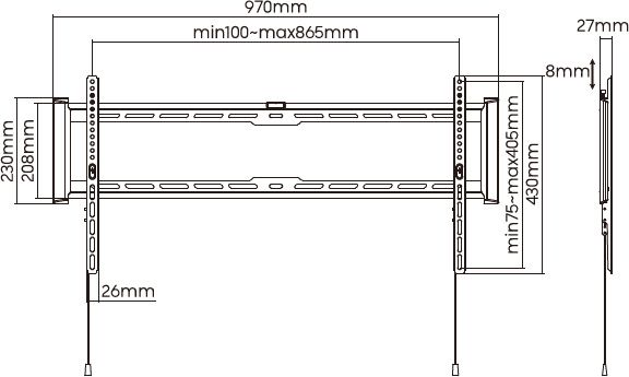 Фиксирана стойка SLIM за телевизор 43" - 90", Макс. натоварване: 75 кг