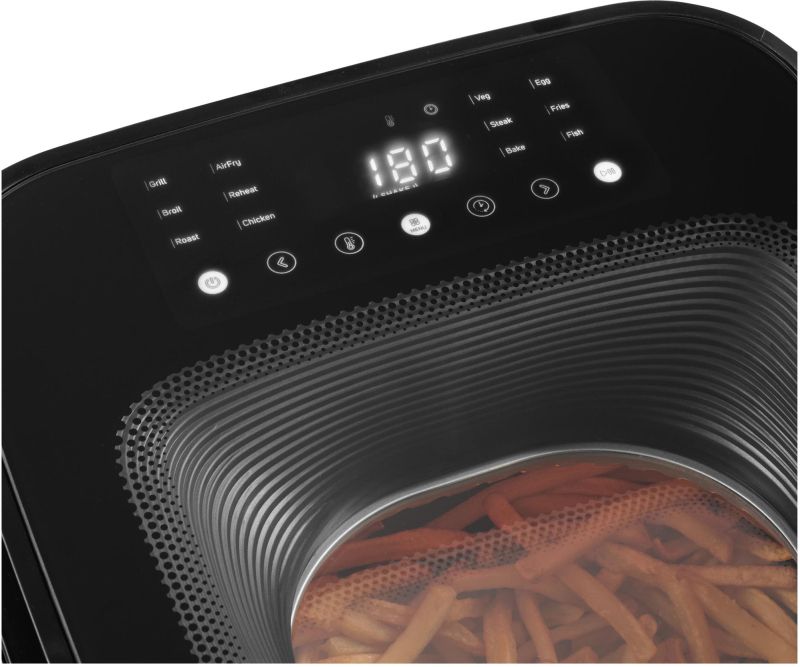 - 12 предварително зададени програми – пържене на въздух, грил, пържени картофи, печено, скариди, риба, зеленчуци, стек, грил, пиле, печене и претопляне
