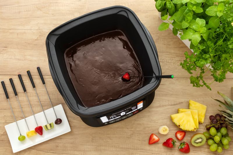 Фондю / Fondue - За приготвяне на шоколадово, сиренено или месно фондю за потапяне на различни вкусни лакомства като сирена, плодове и дори зеленчуци. Включени са висококачествени вилици от неръждаема стомана за потапяне.