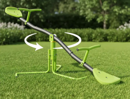 Люлката има здрава метална конструкция и издръжливи пластмасови седалки, които осигуряват дълъг експлоатационен живот. Функциите за безопасност, като вградени стопери, осигуряват безопасна и комфортна игра.
